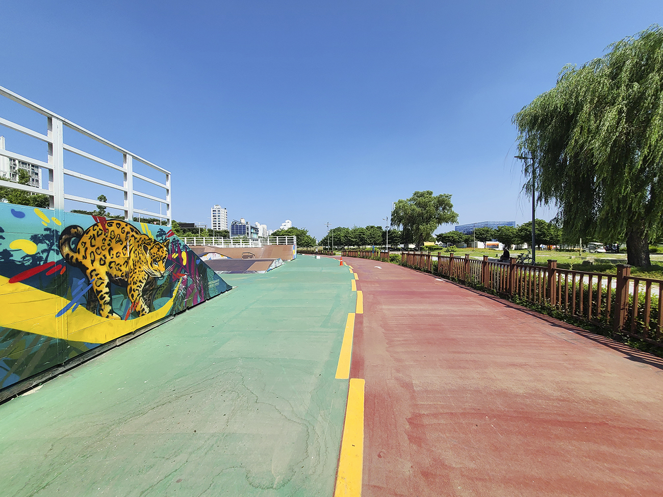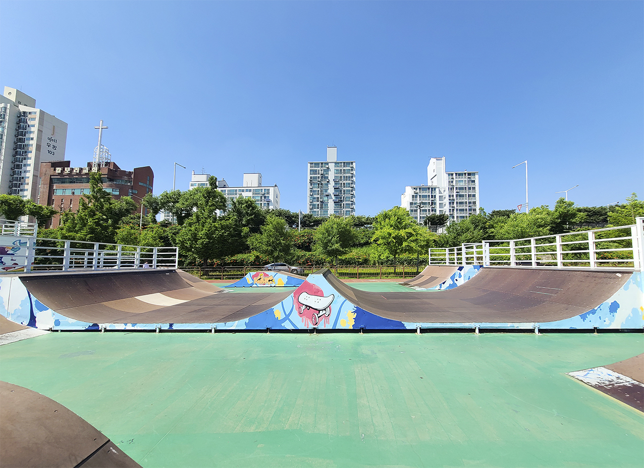 파크 양 끝은 이렇게 구조물이 없는 평지입니다. 여기서 라이딩 연습을 하면 될 거 같아요.