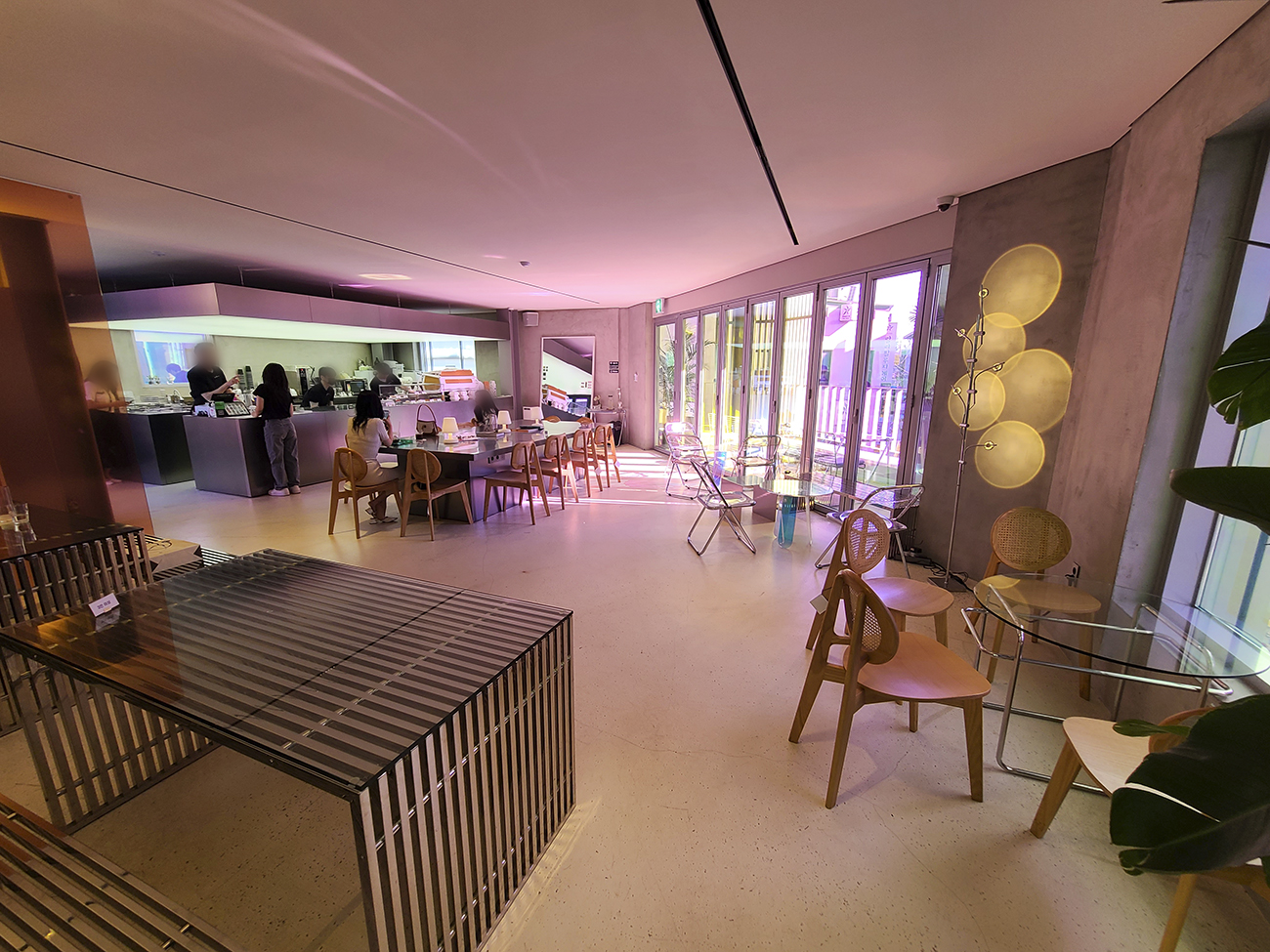 실내 분위기는 보라빛이 특색입니다.
