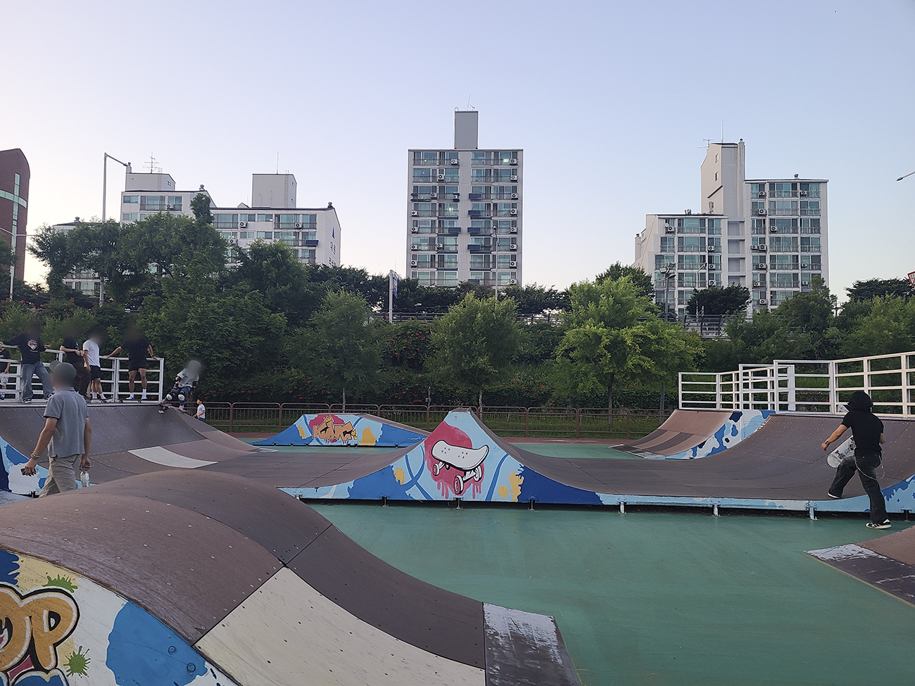 저녁에 오면 굉장한 실력자들이 연습을 하고 있는 모습을 볼 수 있습니다. 저는 스케이트보드 병아리이므로 많은 연습이 필요합니다.