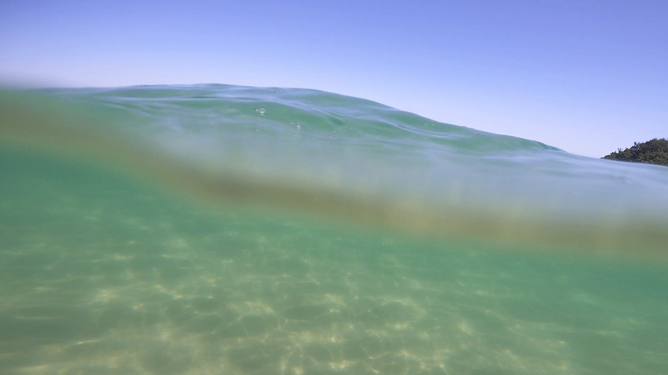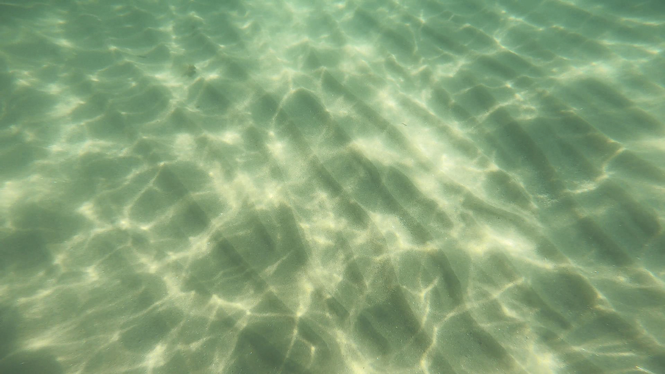 이때 물속에 들어가면 이와 같이 하늘처럼 파랗고 바닥이 보입니다.