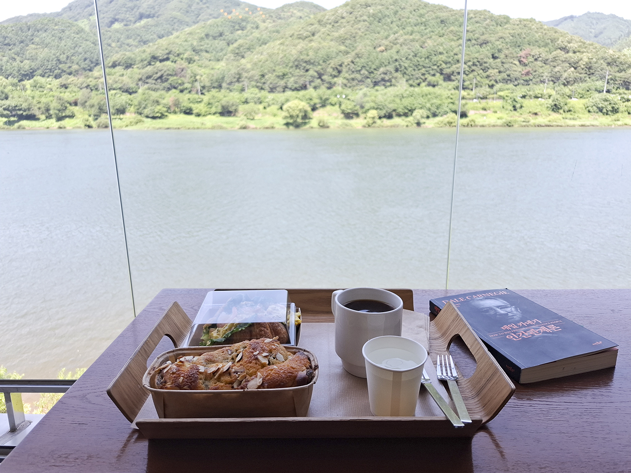 이날 주문한 음료와 빵 그리고 가져온 책 입니다. 이날은 종일 카페에서 책 읽을 생각을 하고 왔어요.